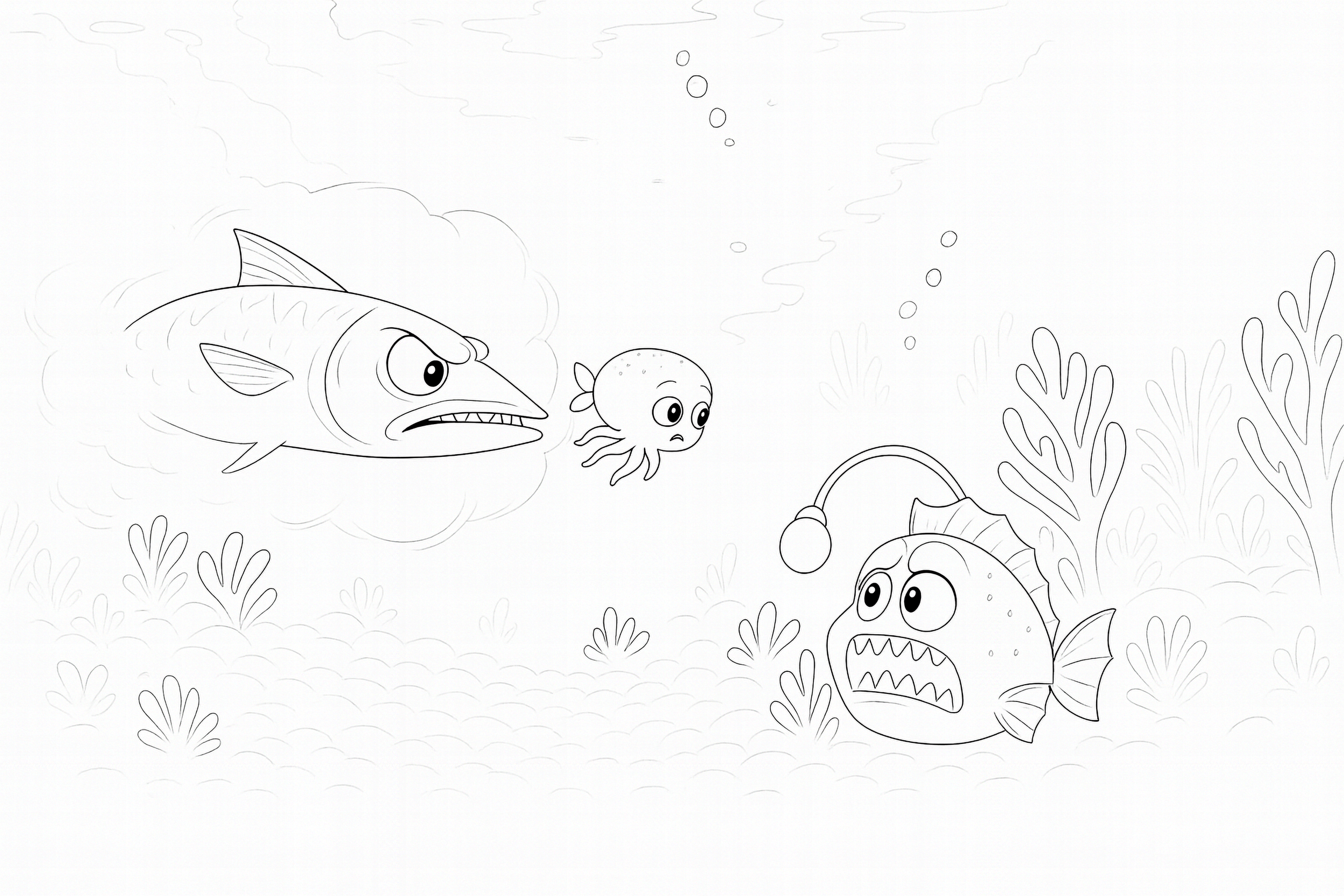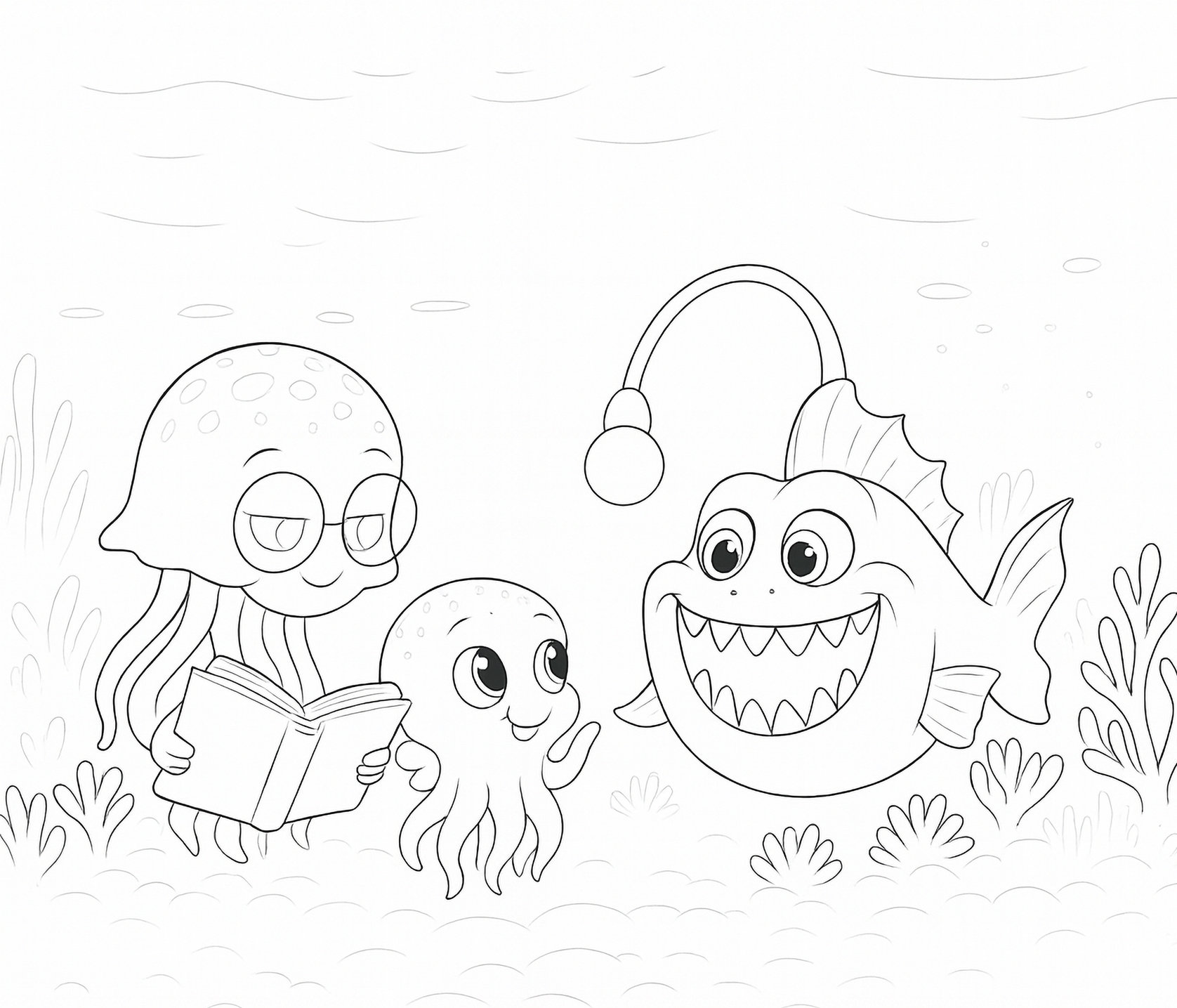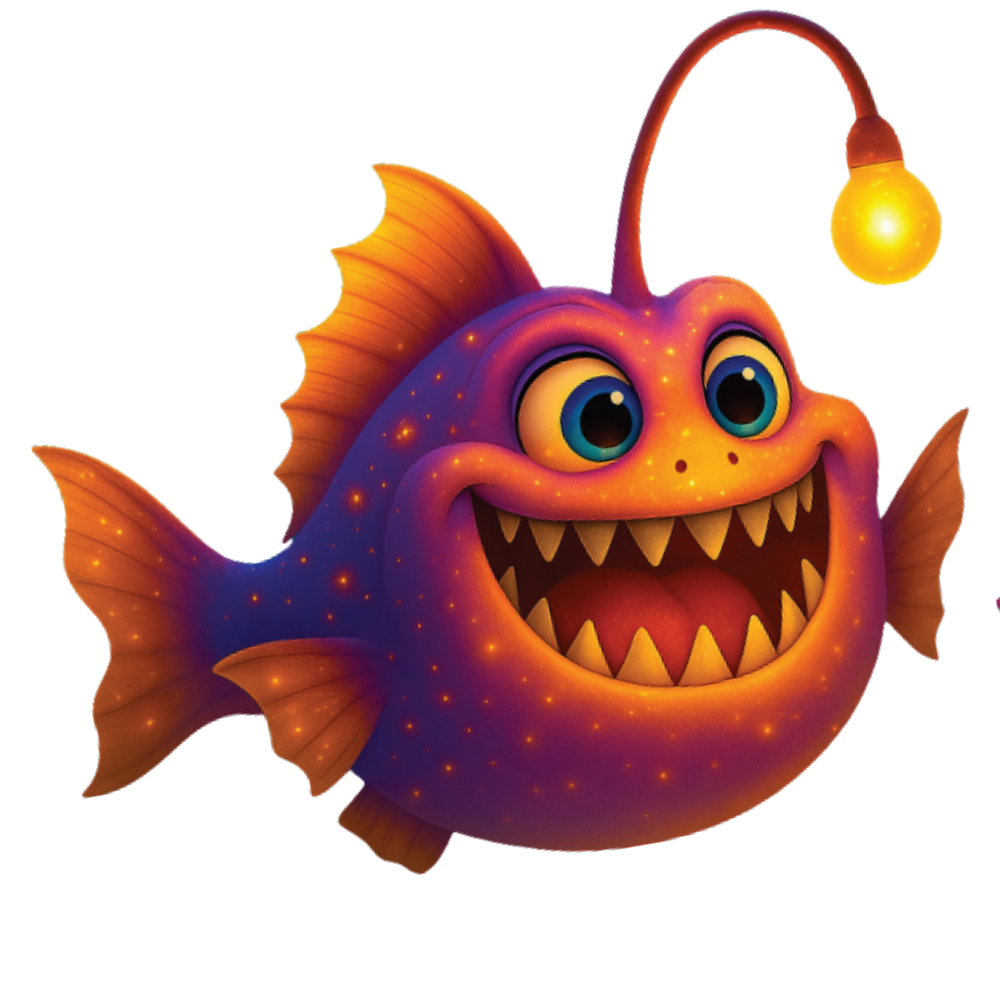 Bob is a curious and slightly shy anglerfish with a glowing lure on his head. Bob's favorite thing to do is explore the hidden corners of the ocean, but he’s a little nervous around other sea creatures. With his glowing "flashlight," Bob can see in the dark and always knows how to light up a room (or ocean)! His journey of courage and friendship begins when he meets Sophia, and their underwater adventures are just starting!